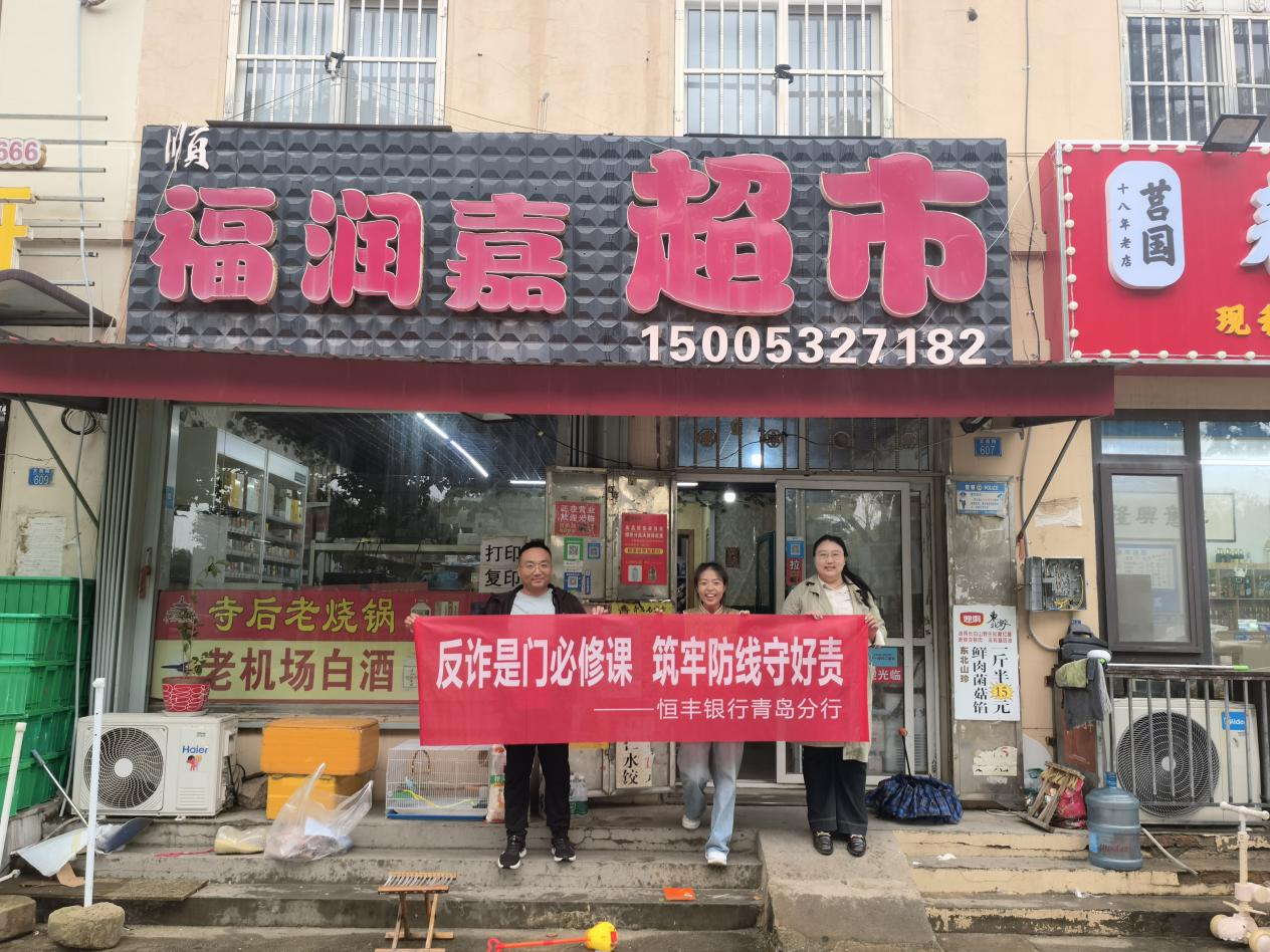 为切实筑牢辖区商户反诈“安全墙”,近日,恒丰银行青岛李沧支行以“服务下沉、精准宣教”为核心,组织金融服务小队深入辖区沿街商铺,开展“反诈知识进商铺”主题宣传活动,将防骗指南转化为商户听得懂、用得上的“经营安全工具”。