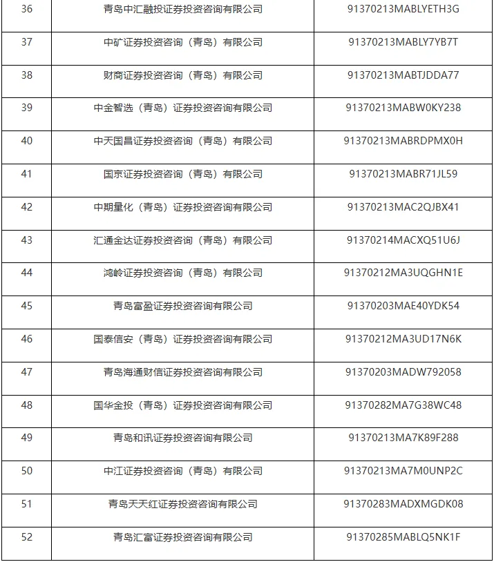 近日,中国证券监督管理委员会青岛监管局官网发布一则公告,公布了《青岛辖区不具有合法证券期货经营业务资质的机构名单(第二批)》,52家不具有合法证券期货经营业务资质的机构被公开披露。