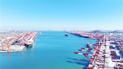 今年以来,青岛港锚定高质量发展目标,坚持“海陆”双向发力,持续织密物流航线网络,新增集装箱航线20条,航线总数扩容至近240条,覆盖全球180多个国家和地区的700多个港口,对接共建“一带一路”及RCEP国家的航线占比超过60%,推动“新三样”、高端设备、精密仪器等高附加值货种源源不断驶向世界各地,成为中国与新兴市场贸易往来的“黄金通道”;依托陆向联动,建成54个内陆港、开通86条海铁联运班列,1-11月份青岛港海铁联运箱量完成262.5万标准箱,同比增长11%,继续保持全国沿海港口首位。