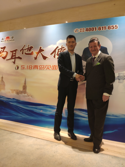 (马耳他驻华大使卓嘉鹰先生(Mr.John Aquilina)与青岛和中总经理赵总)