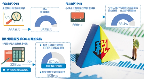 时至年中,今年新出台的系列减税降费措施已相继落地。国家税务总局最新统计数据显示,今年前5个月,全国累计新增减税降费8930亿元,其中新增减税8168亿元。占我国企业总数99%以上的中小企业对此如何评价?经济日报记者近日采访了多家企业和业内专家。