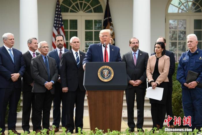 当地时间3月13日,美国总统特朗普在白宫宣布“国家紧急状态”,应对新冠肺炎疫情。 中新社记者 陈孟统 摄