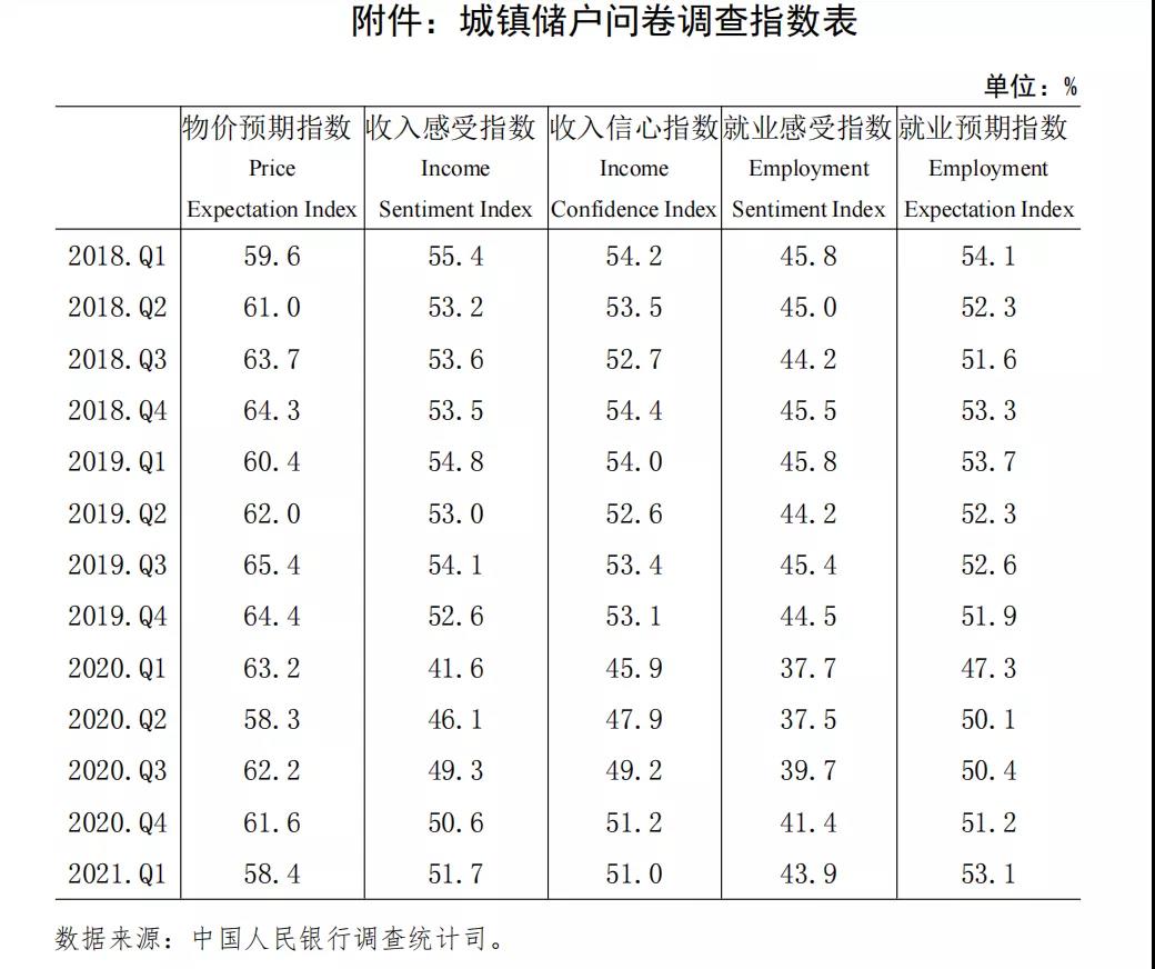 2021年第一季度,中国人民银行在全国 50个城市进行了2万户城镇储户问卷调查。