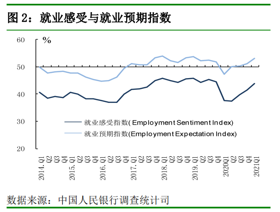 本季就业感受指数为43.9%,比上季上升2.4个百分点。就业预期指数为53.1%,比上季上升1.9个百分点。