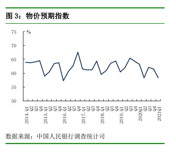 对下季度,物价预期指数为58.4%,比上季下降3.2个百分点。