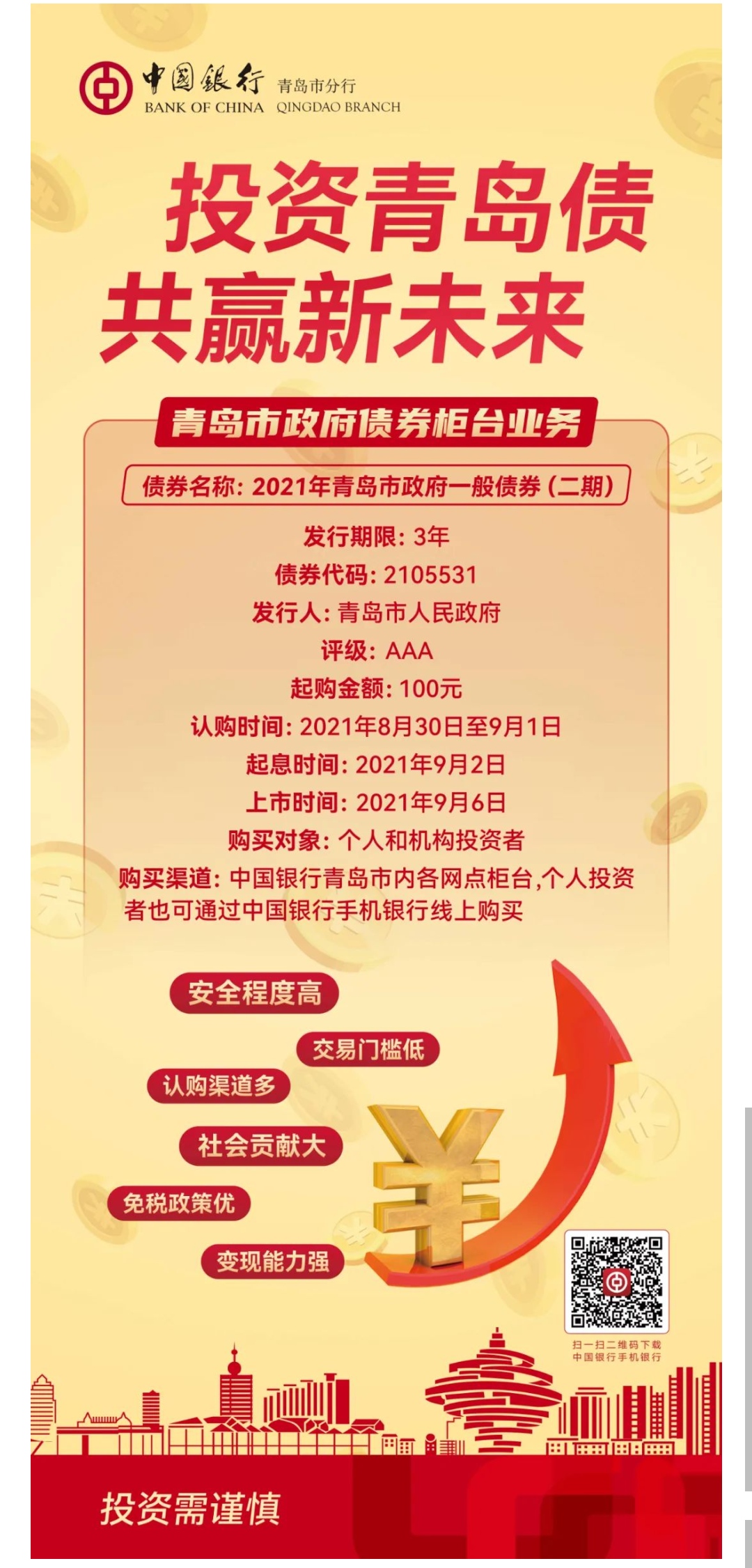 【投资理财】投资青岛债、共赢新未来,买“青岛市地方政府债券”就到中国银行!