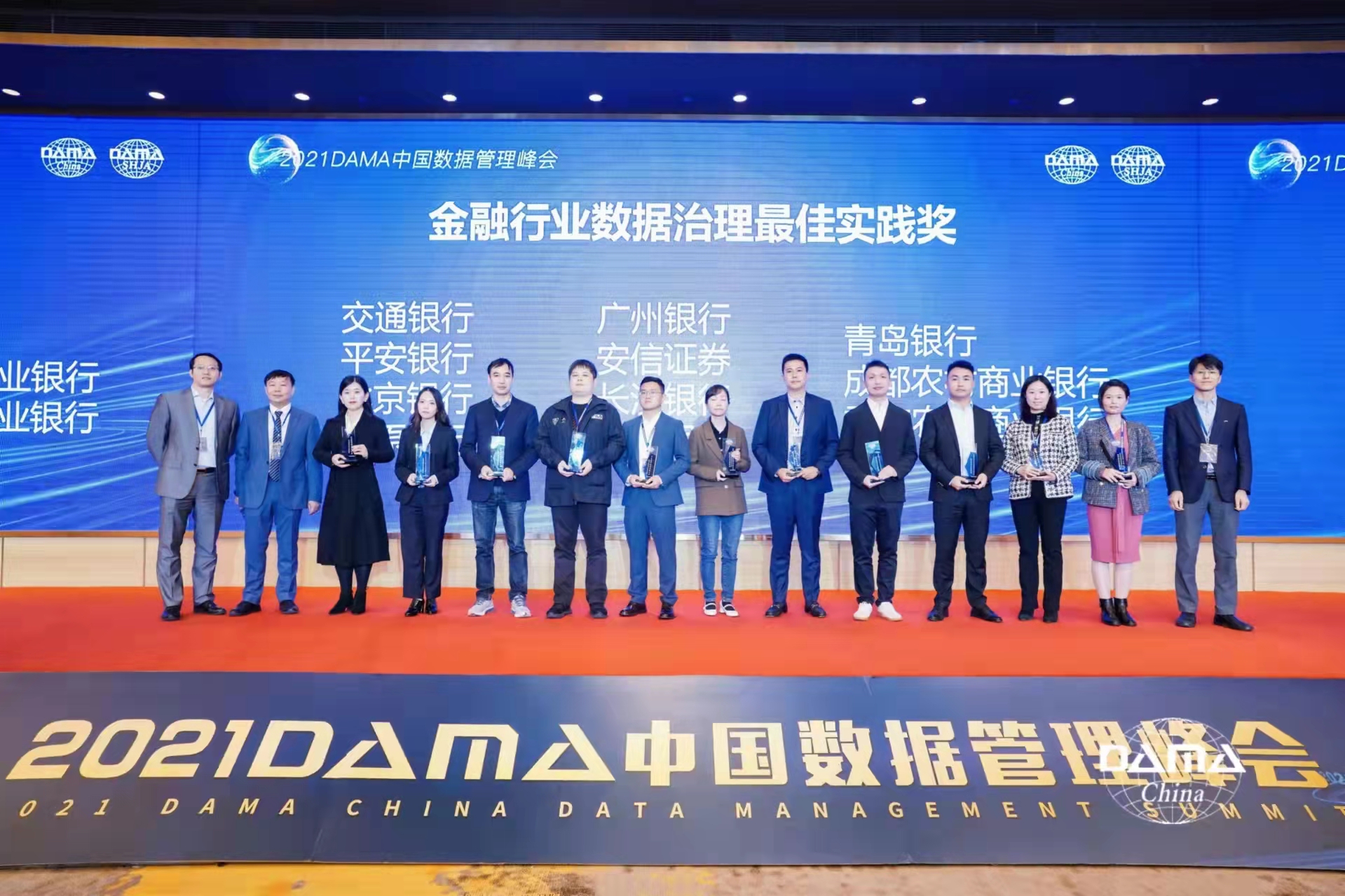 作为峰会最引人关注的环节,2021数据治理年度奖项评选结果重磅揭晓,青岛银行数据治理实践项目从400多家参选企业中脱颖而出,斩获DAMA中国2021“数据治理最佳实践奖”。