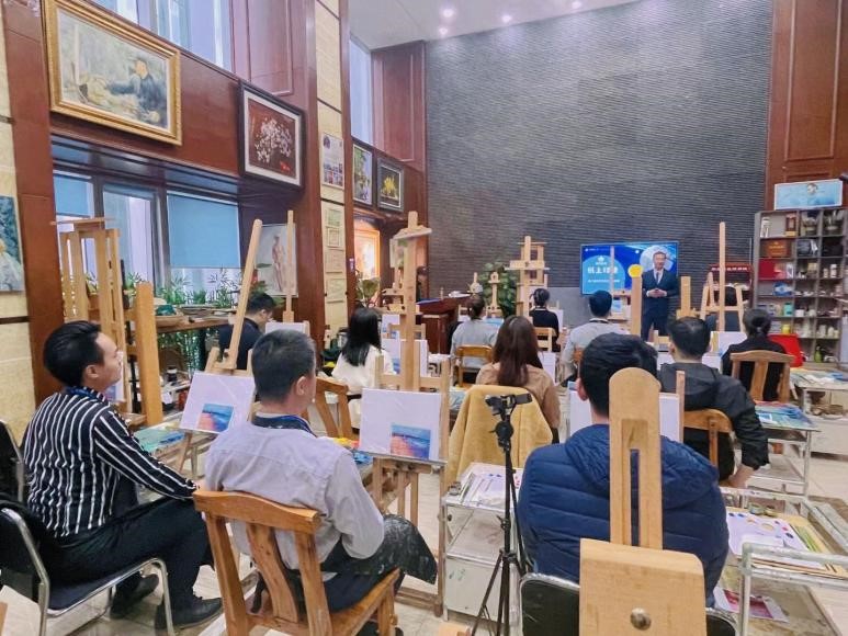 活动在轻松愉悦的氛围中正式开始,首先,由分公司个险渠道负责人王森林开场,代表公司感谢客户对恒安标准人寿的支持和信任,通过讲解公司的发展历程,让客户充分了解公司、认同公司。接着,分公司客服部经理巩佳介绍了公司VIP客户增值服务权益,并与客户热情交流,让客户感受到VIP服务的人性化。最后,在油画老师细心教授下,大家拿起画笔,构图、修改、上色,全神贯注投入到艺术创作当中,一幅幅精美的油画作品跃然而出,每个人都体验了一回敬仰已久的艺术家。