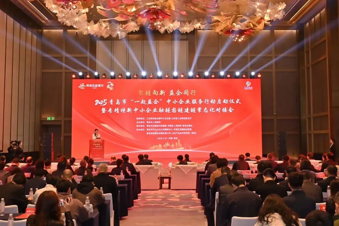 3月27日上午,2025青岛市“一起益企”中小企业服务行动启动仪式暨专精特新中小企业融链固链建链常态化对接会在青岛海天大酒店举行。
