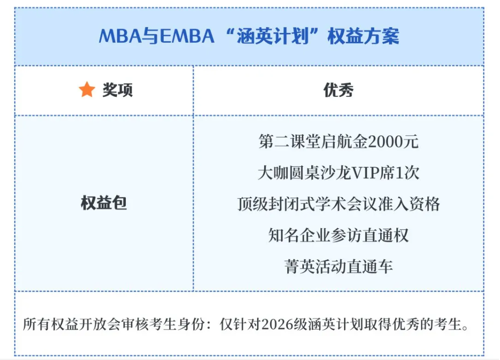 什么是“涵英计划”?你的专属VIP通道!“涵英计划”是西安交通大学MBA为选拔优秀管理人才设立的预审面试生源选拔计划。这不仅是提前锁定席位的机遇,更是一份荣誉与认可。