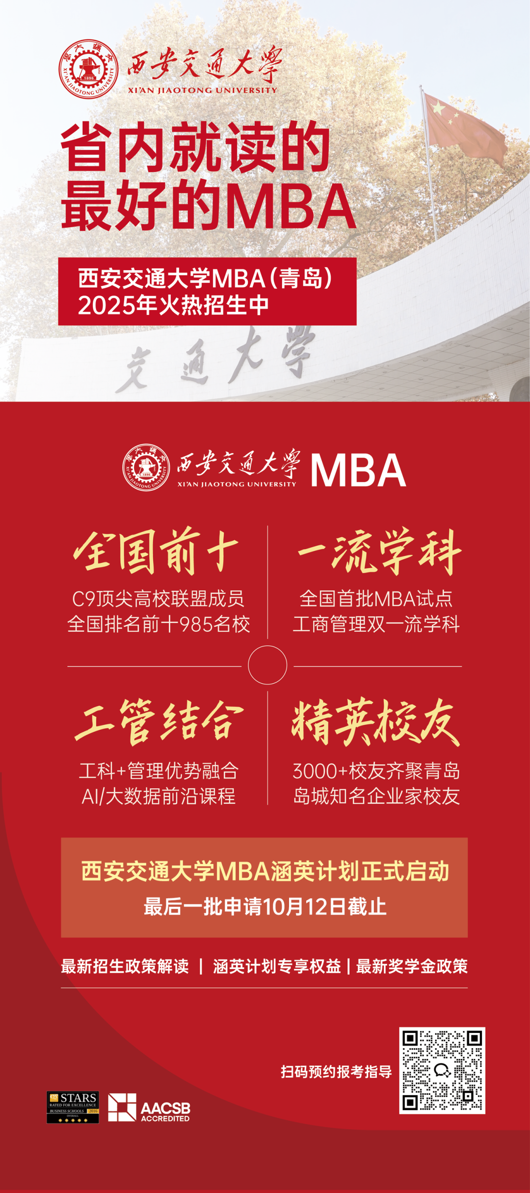 西安交通大学MBA2026「涵英计划」申请,10月12日正式截止!