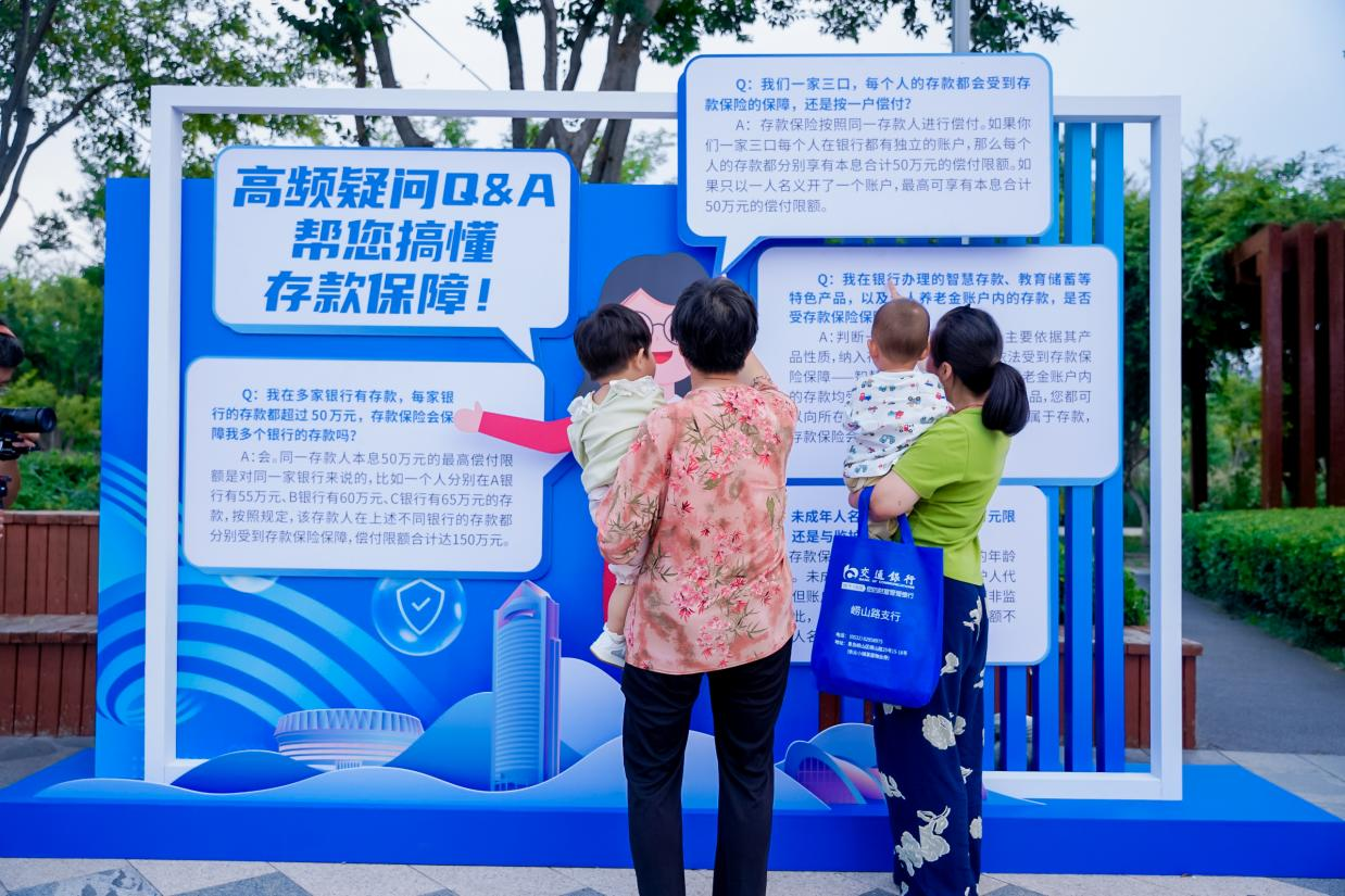 在恒丰银行青岛分行服务展位前,市民们积极参与有奖问答等趣味游戏。“请问两家银行的存款是否分别保障50万?”工作人员刚抛出问题,市民王女士便抢答:“是!每家银行各自保障50万!”看着领取的印有存款保险知识的定制纪念品,王女士笑着说:“玩游戏还能学知识,这种形式太赞了,以后存款更安心了!”