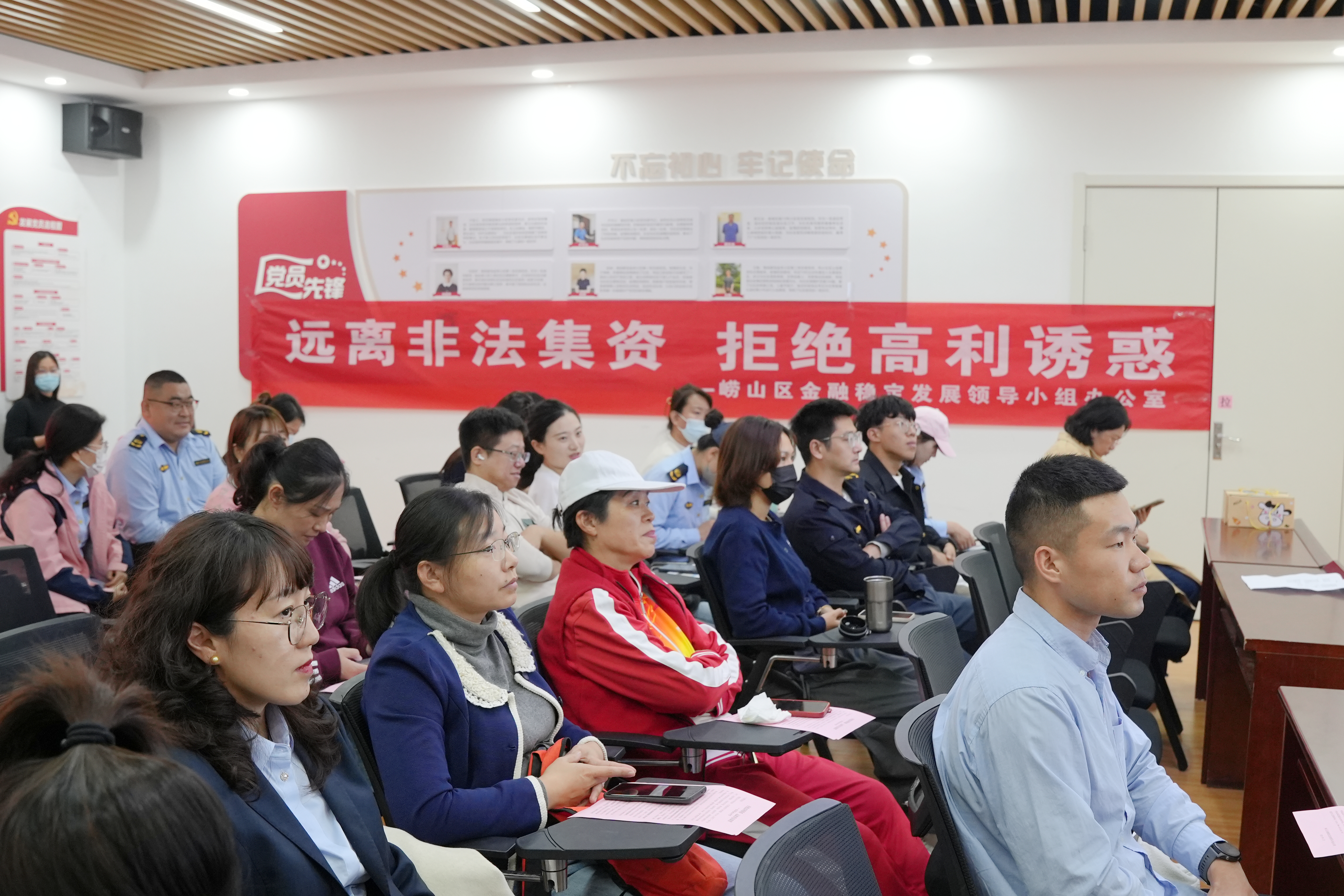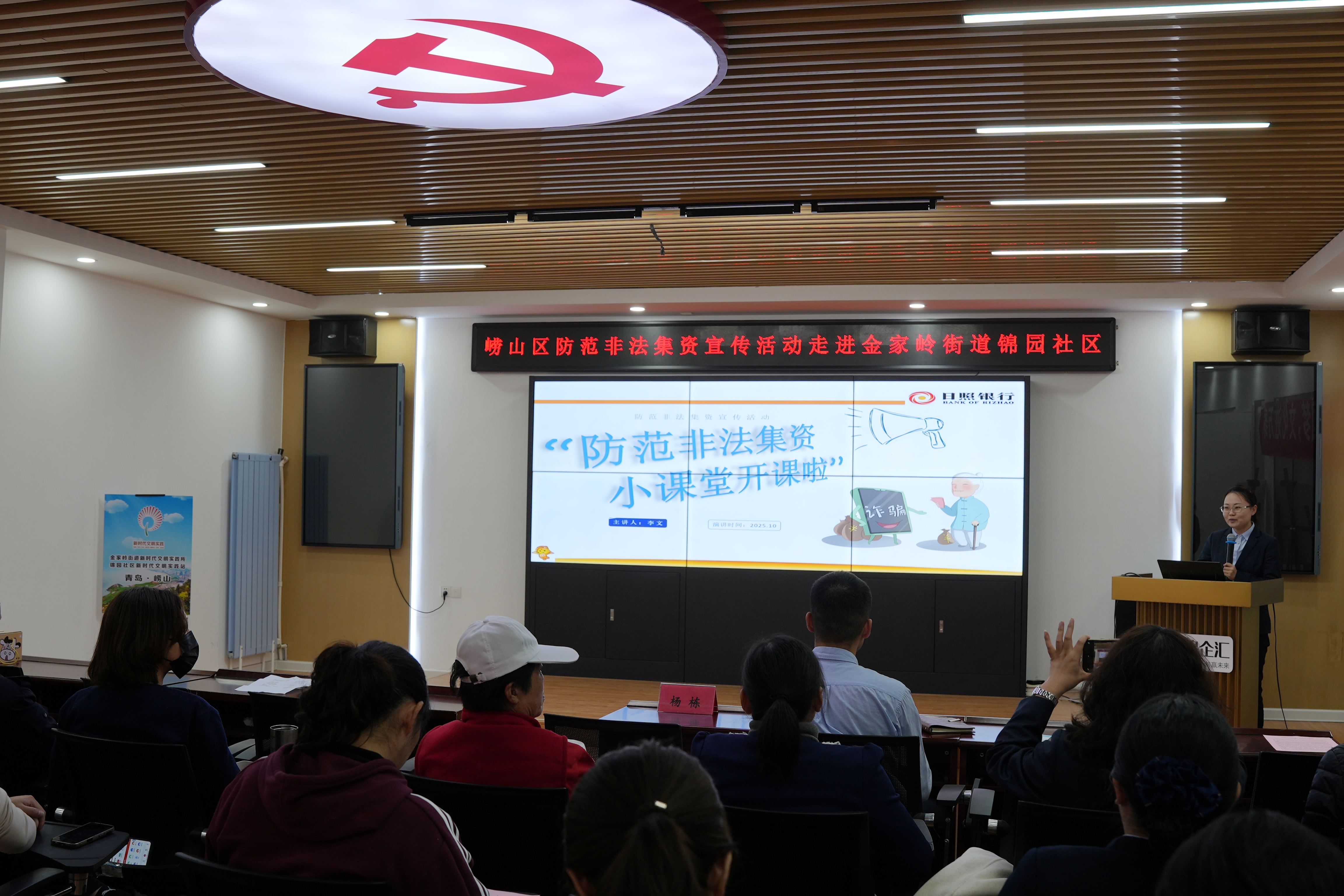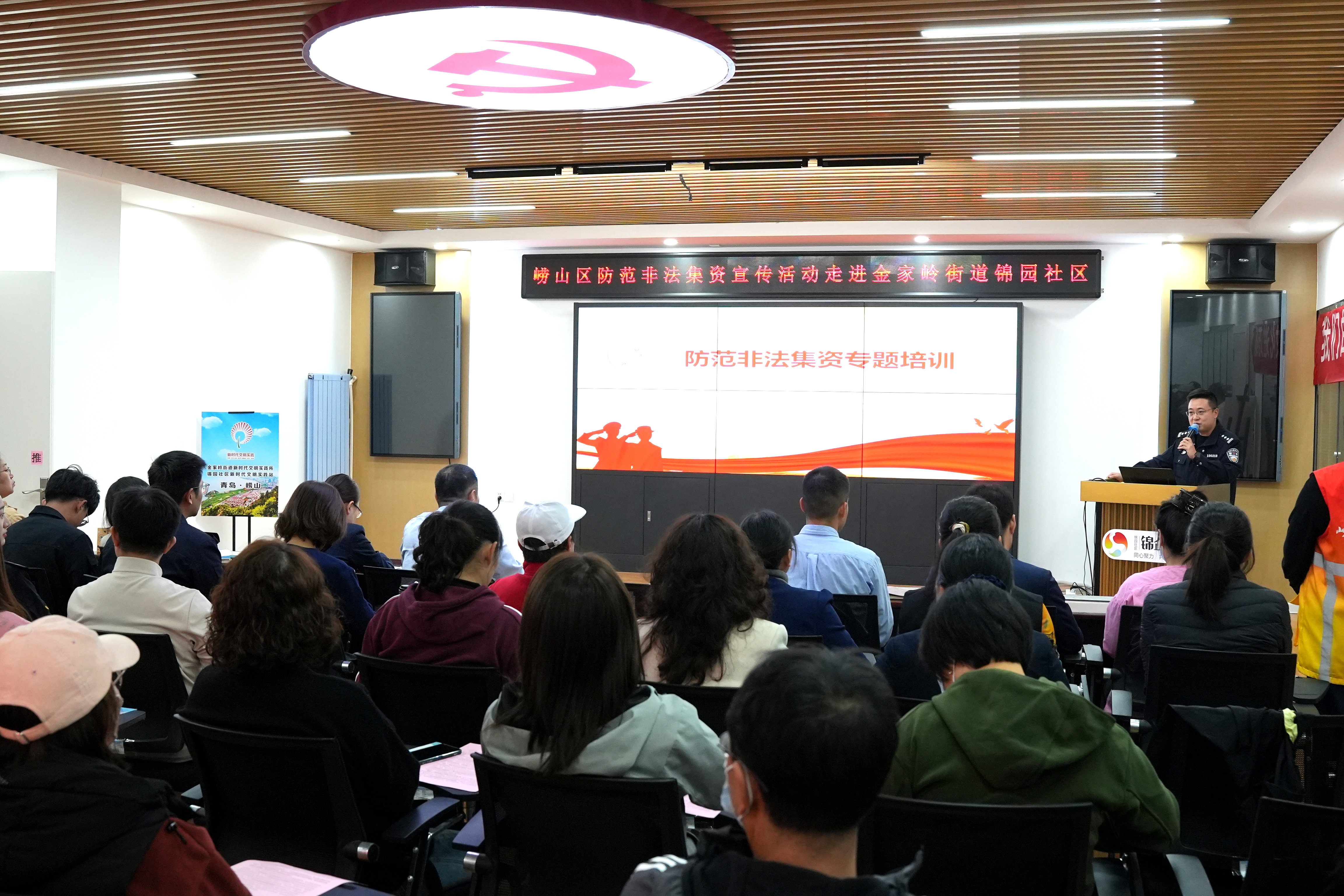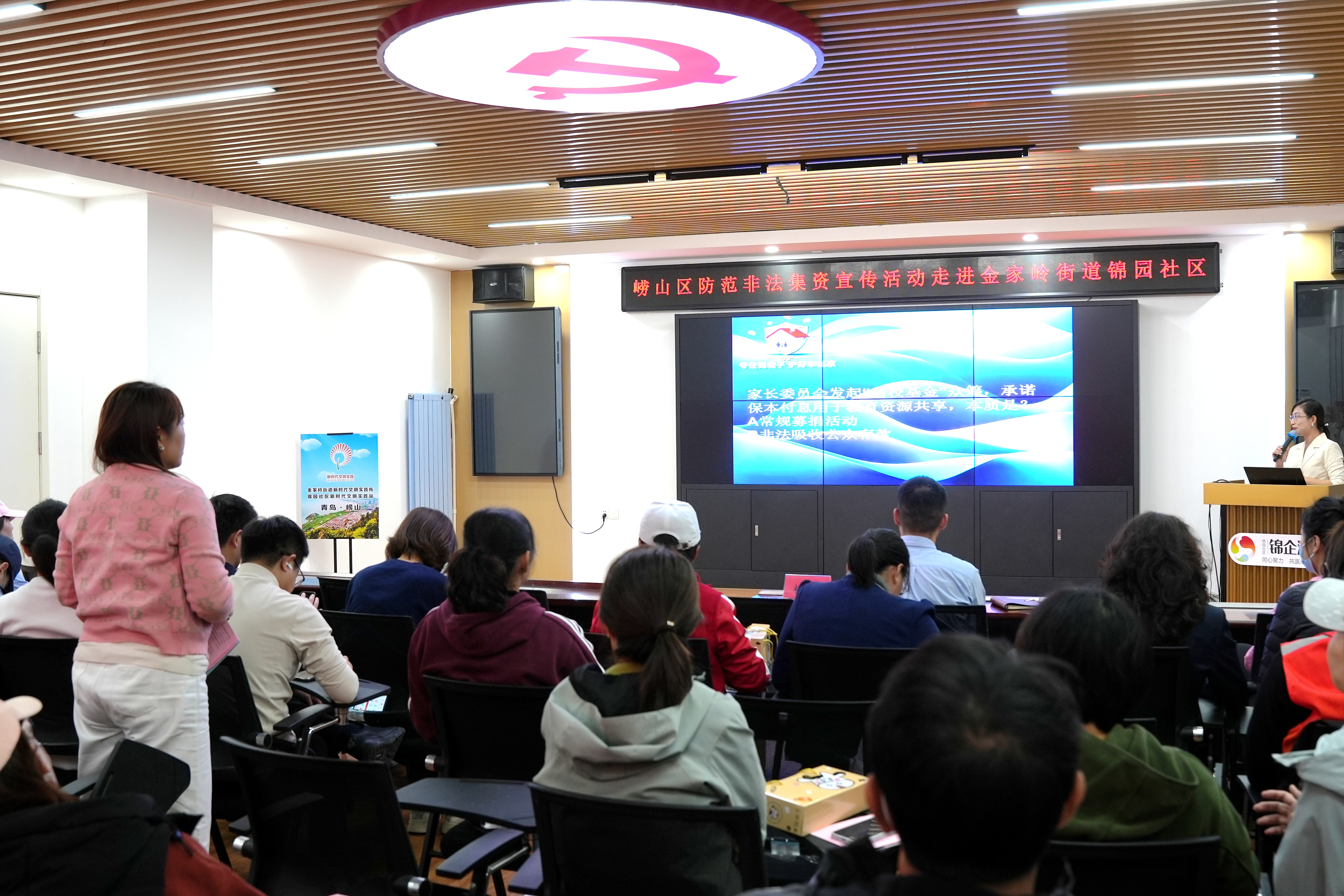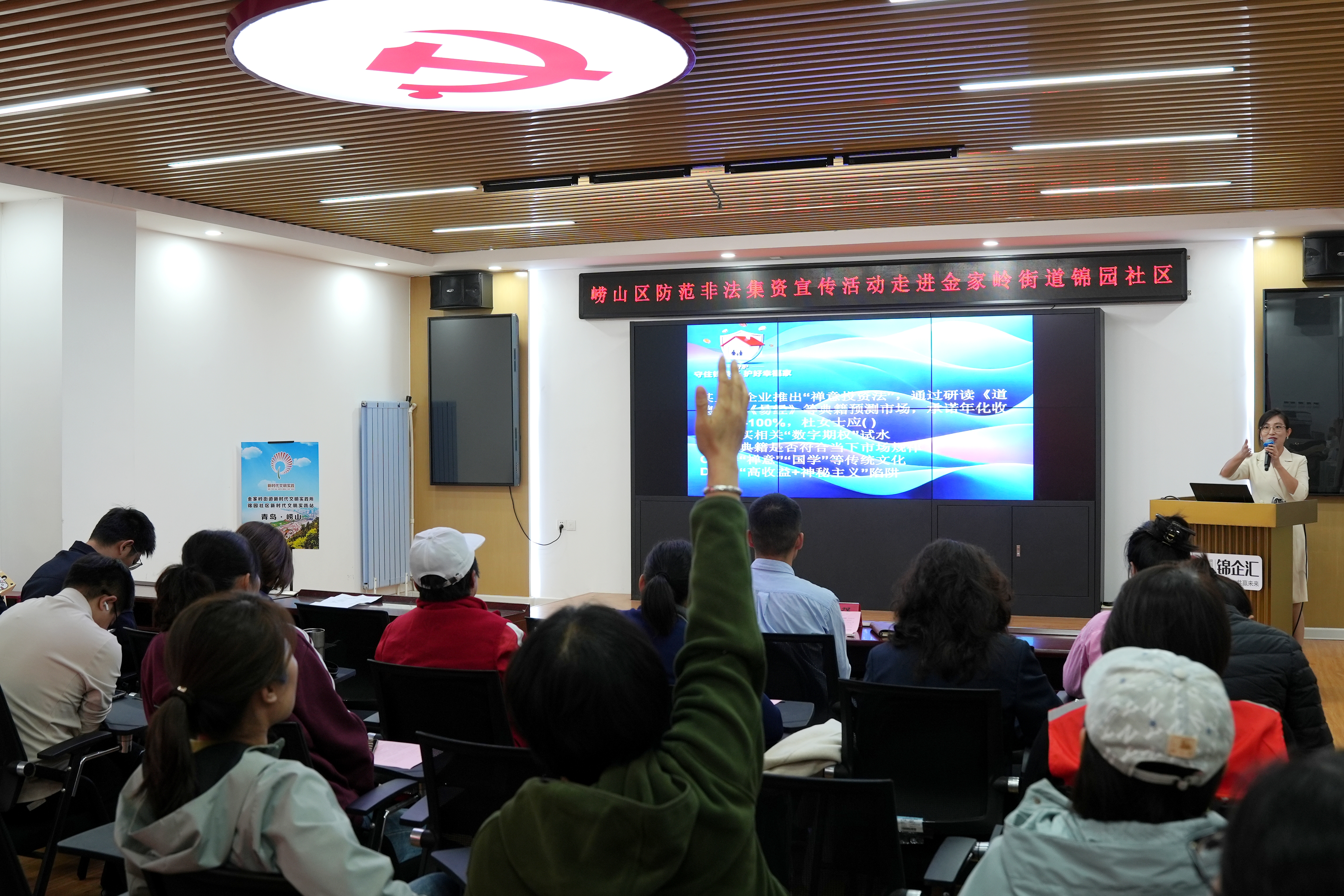 金秋十月,暖意融融。为深化基层法治宣传教育,拧紧社区居民防范非法集资的“思想发条”,守护群众“钱袋子”安全,同时丰富居民精神文化生活,10月20日,崂山区金融稳定发展领导小组办公室联合崂山公安分局、日照银行青岛分行,来到崂山区金家岭街道锦园社区,开展“普法 +防非 +文化”三位一体主题宣传活动。50多名社区居民齐聚一堂,在学习防非知识的同时,感受社区文化魅力。
