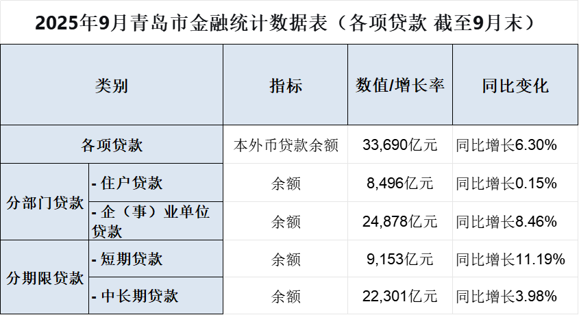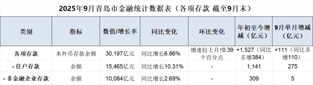 10月22日,中国人民银行青岛市分行最新公布了2025年9月青岛市金融统计数据报告。