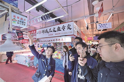 媒体一行走进营口路市场体验放心消费场景建设情况。