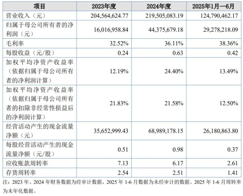 报告期各期,公司归属于母公司所有者的净利润分别为1601.70万元、4437.57万元和2927.82万元。2024年度归属于母公司所有者的净利润较去年增长177.05%,主要系营业收入、毛利率增长,此外2023年实施股权激励导致当年管理费用较高所致;2025年1-6月归属于母公司所有者的净利润较去年同期增长32.59%,主要系营业收入和毛利率增长所致。