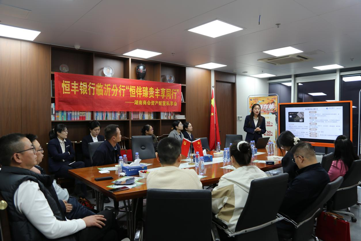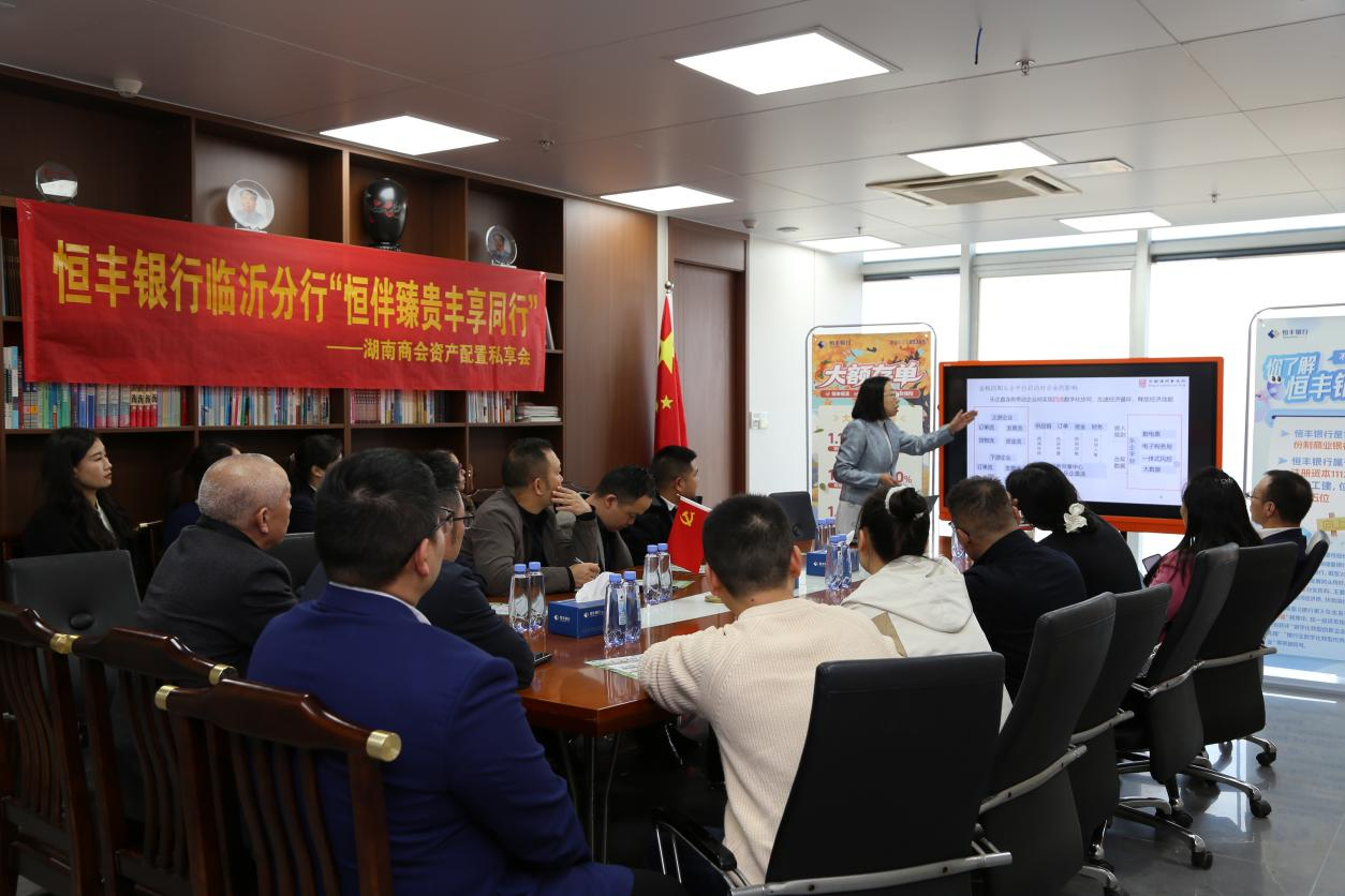 为进一步做强做实客群建设,全力打好全行“客群增长”攻坚战,积极构建“金融+商会+企业”长效对接机制,近日,恒丰银行临沂分行成功举办以“恒伴臻贵·丰享同行”为主题的临沂市湖南商会圈层营销资产配置私享会,精准聚焦在临沂经商的湖南籍企业家群体,通过专业的金融服务方案,满足其多元化财富管理需求,深化银企合作,为临沂当地民营经济高质量发展注入新动能。