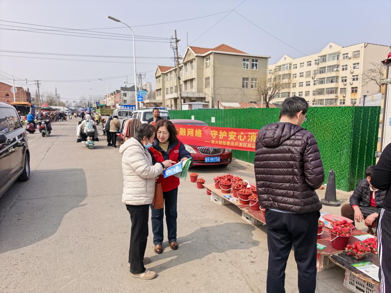 为切实提升农村金融消费者的风险防范意识与自我保护能力,3月11日,英大财险青岛开发区支公司走进辛安大集,开展“金 融知识赶大集”主题宣传活动,将维权“指南针”零距离送到群众家门口。