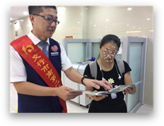 走进社区,支行的服务人员向社区群众积极发放关于相关金融知识的宣传折页,并向广大社区群众耐心讲解,从而传播标准理念,宣传标准文化,提高广大人民群众的金融标准知识水平,向社区群众宣传银行营业网点服务基本要求和服务评价准则。